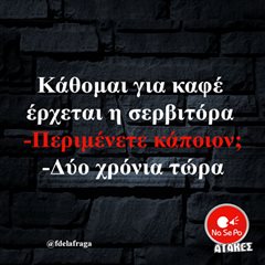 Κάθομαι για καφέ έρχεται η σερβιτόρα