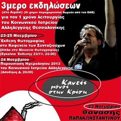 3ήμερο εκδηλώσεων για τον 1ο χρόνο λειτουργίας του Κοινωνικού Ιατρείου Αλληλεγγύης Θεσσαλονίκης.