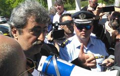 Με τηλεβόα απάντησε στους διαδηλωτές