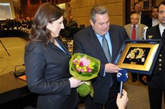 Η Πρόεδρος της Βουλής έφυγε από το ΥΠΕΘΑ με μία ανθοδέσμη και πολλά...