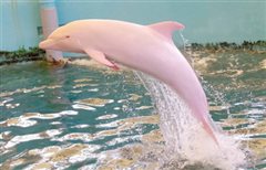 Tο σπάνιο ροζ δελφίνι που πάσχει από αλμπινισμό και ζει αιχμάλωτο
