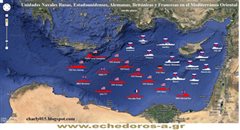 Συρία - Χάρτης με τα πολεμικά πλοία στη Μεσόγειο