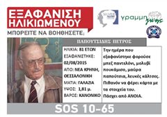 Eξαφάνιση 81χρονου από τη Νέα Κρήνη Καλαμαριάς