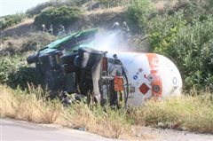 Ανατροπή νταλίκας με χημικά στην Εγνατία Οδό