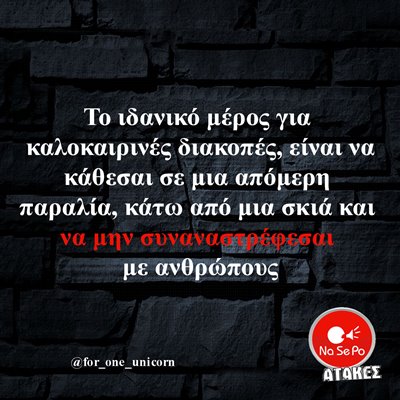 Το ιδανικό μέρος για καλοκαιρινές διακοπές, είναι να κάθεσαι σε μια απόμερη παραλία, κάτω από μια σκιά και να μην συναναστρέφεσαι με ανθρώπους @for_one_unicorn