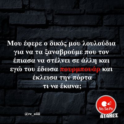 Μου έφερε ο δικός μου λουλούδια για να τα ξαναβρούμε που τον έπιασα να στέλνει σε άλλη και εγώ του έδωσα πουρμπουάρ και έκλεισα την πόρτα τι να έκανα; @re_aiiii