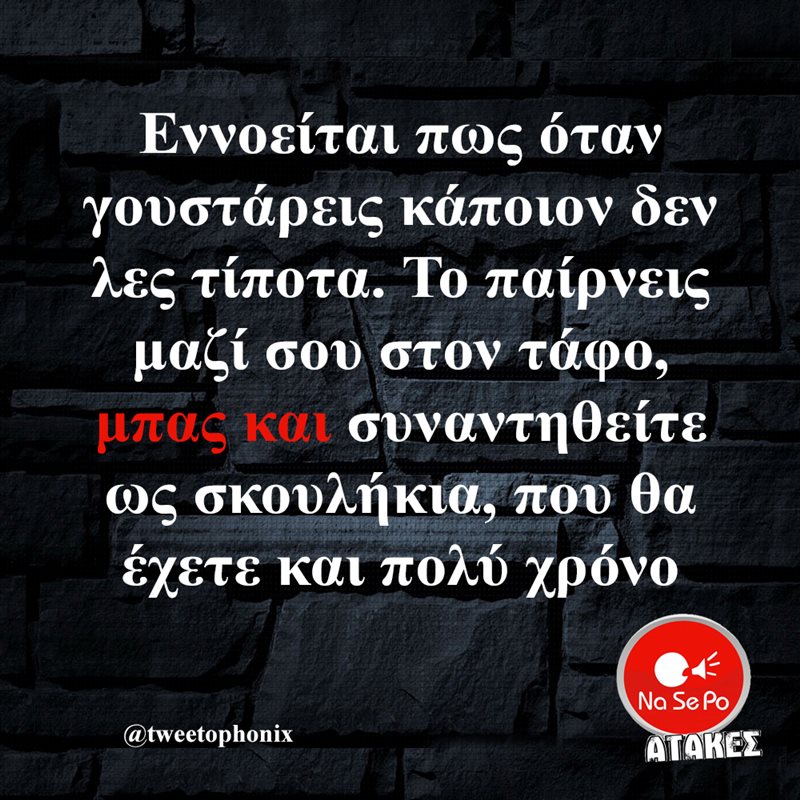 Εννοείται πως όταν γουστάρεις κάποιον δεν λες τίποτα. Το παίρνεις μαζί σου στον τάφο, μπας και συναντηθείτε ως σκουλήκια, που θα έχετε και πολύ χρόνο @tweetophonix