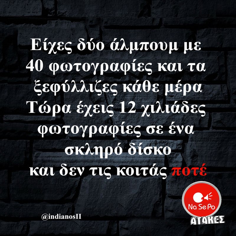 Είχες δύο άλμπουμ με 40 φωτογραφίες και τα ξεφύλλιζες κάθε μέρα Τώρα έχεις 12 χιλιάδες φωτογραφίες σε ένα σκληρό δίσκο και δεν τις κοιτάς ποτέ @indianosII
