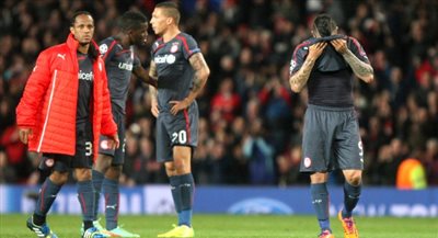Το μεγάλο όνειρο του Ολυμπιακού για πρόκριση στους «8» του Champions League σταμάτησε στο «Όλντ Τράφορντ». Ο Ρόμπιν Φαν Πέρσι πετυχαίνοντας χατ-τρικ οδήγησε τη Μάντσεστερ Γιουνάιτεντ στην ανατροπή – του 2-0 στο «Γεώργιος Καραϊσκάκης» - και με το 3-0 οι «κόκκινοι διάβολοι» έκλεψαν το εισιτήριο απ’ τους παίκτες του Μίτσελ.