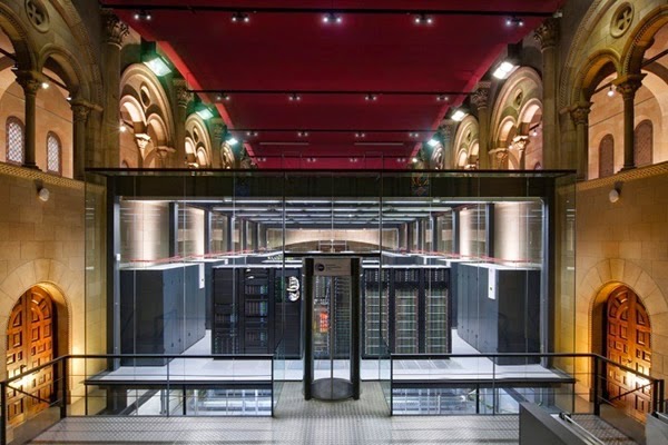Μιλάμε για τον MareNostrum (λατινογενής έκφραση που σημαίνει "η θάλασσά μας". Την χρησιμοποιούσαν οι Ρωμαίοι της αυτοκρατορικής περιόδου για να χαρακτηρίσουν τη Μεσόγειο, καθώς αυτή περικλειόταν από εδάφη της Αυτοκρατορίας τους), έναν από τους επτά υπερυπολογιστές του ισπανικού Δικτύου Υπερυπολογιστών και, αναμφισβήτητα, τον πιο όμορφο αρχιτεκτονικά. Μέσα στο παρεκκλήσι, η ωμή δύναμη της σύγχρονης τεχνολογίας στέκεται δίπλα στις παλαιές κιονοστοιχίες, τις ρωμανικές καμάρες και τα περίτεχνα ξυλόγλυπτα στις πόρτες.