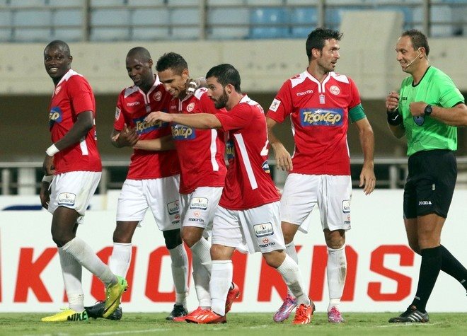 Οι γηπεδούχοι αντιμετώπιζαν σοβαρά προβλήματα –ενδεικτικό στοιχείο και η αλλαγή του Δερμιτζάκη μόλις στο 38’- στην ανάπτυξη, γεγονός που εκμεταλλεύτηκε η ομάδα του Χριστόπουλου ελέγχοντας με άνεση τον χώρο του κέντρου. Με εξαίρεση κάποια σουτ, στα οποία ήταν σε ετοιμότητα οι τερματοφύλακες, δεν υπήρξε κάποια μεγάλη ευκαιρία μέχρι το τέλος του πρώτου ημιχρόνου.